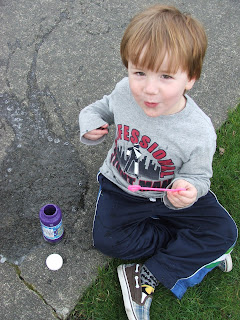 Haydn and I were entertaining ourselves yesterday while Naomi snoozed in the back seat. He took this opportunity to try on every pair of sunglasses he found in the car, blew bubbles on the sidewalk, and then met daddy at the park when Naomi woke up!